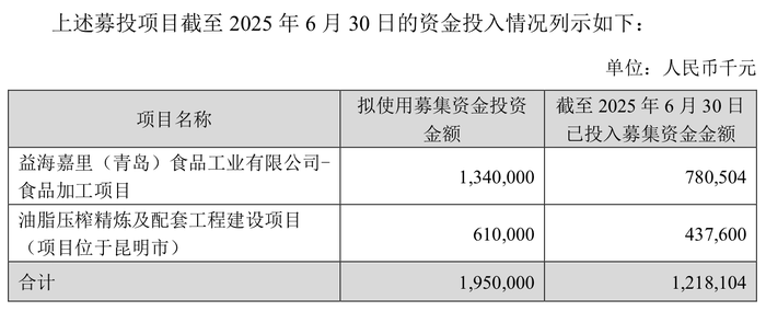 就在8月13日袒露半年报的同期,金龙鱼还发布了一份《对于部分募投名目延期的公告》,公司告示将“益海嘉里(青岛)食物工业有限公司-食物加工名目”、“油脂压榨精好意思及配套工程开拓名目”(名目位于昆明市)达到预定可使用状态的时刻辩别改动至2027年12月31日。